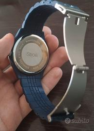 Colori: argentato sulla ghiera, nel retro e all'interno( lancette numeri e complicazioni) Blu nel resto dell'orologio.