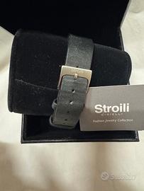 Orologio da uomo Stroili vintage movimento al quartz cassa in acciaio cinturino in pelle nera usato molto poco completo della sua scatola