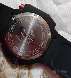 Vendo Orologio Strumento Marino modello DeepSea 1000 metri... versione nero e rossa... movimento al quarzo... con valvola di espulsione dell'elio... imponente... misura cassa 50 mm. per uno spessore di 16 mm .. ottime condizioni... funzionante... solo orologio...