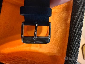 Fairmount e’ un orologio dell’Ascot Park series, una collezione di orologi dal design ultra sottile. Casa in acciaio inossidabile, movimento svizzero al quarzo Ronda, quadrante in madreperla timbrato idraulicamente. Indicatori a bastone applicati manualmente, lancette a rasoio. Cinturino in vera pelle blu completamente integrato che lo rende confortevole al polso. Resistente all’acqua. 5 atm Peso 250 g Calendario a h 6 Colore quadrante: Bianco madreperla