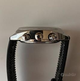 Come nuovo, eferenza molto rara con “stop second” - tutto originale e perfetto. Meccanica precisissima e molto robusta, revisione effettuata di recente (docunentabike). Fornito con diversi ricambi, compreso di cinturino originale, scatola (solo testa come da prassi) e rarissimo certificato di assegnazione al pilota che lo avrebbe (poco) indossato. Vendo senza permute Solo persone interessate