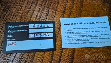 Movimento automatico Swiss Made Edox Caliber 80 (SW 200) con riserva di 38 ore - Data.
