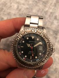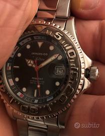 Orologio Immersion Primatist by Enzo Maiorca, marca Stendardo, batteria nuova, bracciale generico ma in dotazione diamo la chiusura originale. Diametro cassa, senza corona (a vite), mm.40, buono stato.