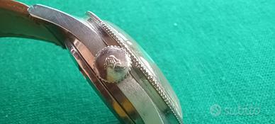 Orologio vintage anni 70 Super Squale '"Jules" 17 rubini automatico - swiss made - 30 atm -movimento "Felsa 4007"automatico - 33 mm subacqueo con quadrante grigio sunburst ,cassa acciaio. Preciso che il quadrante e fondello sono di due modelli diversi il primo è di uno Squale 30 atmosfere il secondo di un 20 atmosfere. Le misure sono :40 corona compresa - ghiera 38 - cassa 37 - spazio anse 20 - spessore 13 compreso vetro - peso 54 grammi. Perfettamente funzionante,le condizioni estetiche sono esattamente come in foto, queste ultime sono parte integrante della descrizione e mostrano l'esatto stato di conservazione dell'oggetto in vendita