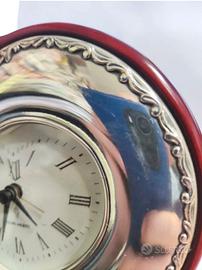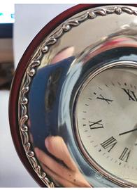 Orologio Sveglia in Argento e Legno a Forma di Cuore di "VALORI Argenti". Orologio vintage da tavolo con sveglia testato e funzionante (funziona con 1 batteria AA 1,5 V inclusa), alcuni segni di graffi sulla parte in argento, parte in legno in condizioni ottime, della famosa marca "VALORI Argenti", dimensioni 15x13 cm, prego vedere tutte le foto che sono parte integrante della descrizione, riceverete esattamente quello che vedete in fotografia,