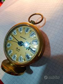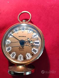 Orologio Rialto Sveglia quarzo Made in Germany finemente lavorata i numeri romani appaiono contornati da linea dorata e lievemente in rilievo, funzionante anni forse 70 all'interno appare un numero in blu (2022 ma certamente non può riferirsi all'anno della sua costruzione)
