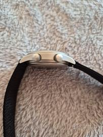 Svegliarino russo Poljot Aviator, carica manuale. Cassa in acciaio satinato diametro 40 mm, distanza tra leanse 20 mm, corone a vite logate. Serie limitata, 470 di 999 esemplari. Perfettamente funzionante e tenuto come nuovo.