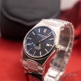 Vendo per cambio progetto, il mio frederique constant highlife certificato COSC, orologio Automatico svizzero con quadrante blu. Completo di scatola originale con box da viaggio, cinturino alternativo, certificazione COSC, e garanzia di 1 anno ancora del concessionario. Non scambio, I'orologio è nuovo e mai indossato e le foto sono scattate da me personalmente. Possibilità di consegna a mano in zona Torino.