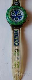 Orologio Swatch Aqua Chrono 1996 Vintage originale, retro cassa materiale sintetico trasparente e cinturino materiale sintetico con colorazione a stampa: Control Panel SB104 1996. Cinturino presenta segni del tempo della stampa zona fori per allacciare l'orologio. Orologio perfetto, crono non parte. Batteria nuova inclusa.