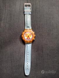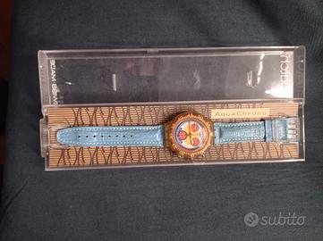 Swatch Aqua Chrono anni '80. Modello particolare con cinturino in pelle trattata. Ghiera girevole. Condizioni eccellenti. Funzionante, batteria nuova.