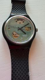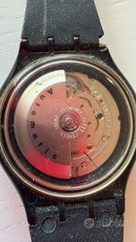 L'orologio mostrato nell'immagine è uno Swatch Automatic "Black Motion" (referenza SAB100), un modello vintage lanciato originariamente nel 1991.