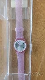 swatch bambina, mai utilizzato, con confezione originale. Rosa con piccoli glitter sul cinturino e "punti luce" sul quadrante. Prezzo nuovo €75 ( come da annuncio)