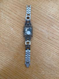 orologio Swatch da donna L'orologio mostrato è il modello vintage Swatch Be Found (codice prodotto SUBM102G). Questo segnatempo si distingue per la sua cassa quadrata trasparente e il bracciale in acciaio inossidabile impreziosito da cristalli.