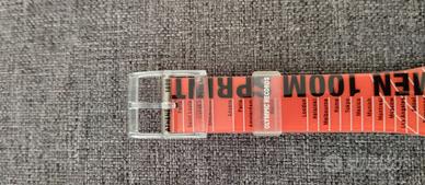Orologio Swatch Gent "On your marks". L' orologio fa parte della collezione Olympic games di Swatch, ed è commemorativo dell' edizione di Sydney 2000 di cui Swatch era l' ufficiale time keeper. L' orologio non è mai stato indossato, non vi sono graffi, abrasioni, né sul quadrante né sul cinturino. La custodia è integra, la scatola è originale. Il quadrante ed il cinturino rappresentano la pista di atletica , sono riportate le edizioni,le città ospitanti ed i relativi record della gara regina delle olimpiadi : i 100 m. Prezzo leggermente trattabile, spese di spedizione a parte.