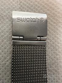 Orologio Swatch “Irony aluminium” cinturino in morbido acciaio regolabile che fascia perfettamente il proprio polso , vetro leggermente segnato ma se smerigliato si riduce il difetto( e’ sul lato dx del quadrante ). Funzionante , bisogna sostituire la pila , “anno 1990”