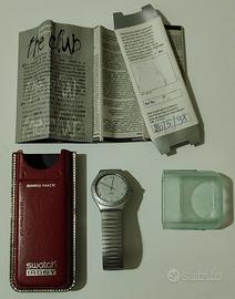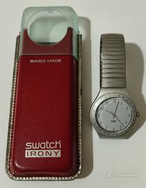 Elegante orologio Swatch della linea Irony, con cassa e cinturino in alluminio dal design compatto e raffinato.