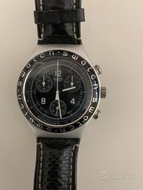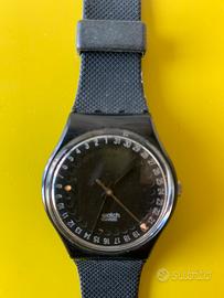 2 orologi marca originale Swatch, uno tutto in plastica e gomma nera l'altro