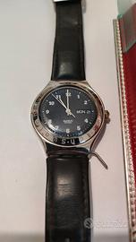 Lo Swatch Irony Big Superblu è un sogno in blu scuro. Proviene da una delle prime serie di orologi Swatch Irony. Questo orologio classico ha una cassa in acciaio inossidabile lucido, un nobile cinturino in pelle lucida, è impermeabile e ha un accurato movimento al quarzo con batteria. In alto, la data viene visualizzata anche sul quadrante. Questo popolare Irony Swatch è ugualmente adatto per uomini e donne grazie alla sua semplicità.