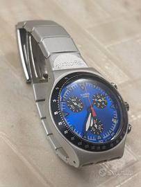 Orologio vintage ,marchio swatch ,modelllo irony alluminium chrono watch , diametro cassa 40mm misura completa 17cm . Testato e funzionante con pila nuova , qualche micrograffio sul vetro causa utilizzo , senza confezione .