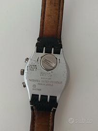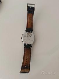 Swatch Irony Chrono Alluminio con cinturino pelle originale. Resistente all'acqua. Pila da sostituire.