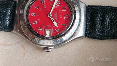 Swatch Irony con quadrante rosso, con qualche graffio sul vetro come da foto.pila nuova. orologio funzionante ma la data avanza soltanto meccanicamente, non più manualmente, con lo scatto centrale della corona