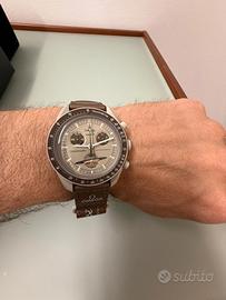 Vendo causa inutilizzo orologio funzionante Swatch Moonswatch Saturn, cassa in ceramica, diamtetro 42mm, cinturino originale in velcro, movimento al quarzo, cronografo, completo di scatola e documenti, acquistato giugno 2023 in negozio ufficiale, indossato pochissimo, solo vendita di persona, contato anche via whatapp