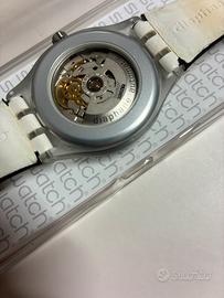 Extra: Completo della sua custodia originale Swatch in plastica trasparente.