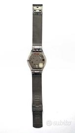 Orologio Swatch Skin Metal Knit (modello SFM118M) con bracciale in acciaio a maglia milanese argentato e quadrante grigio/silver con numeri a 12-3-6-9.