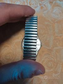 Indossato poche volte, ottime condizioni vetro e cinturino presentano leggeri graffi come da foto - anno 1998 - 100% originale e funzionante, con pila nuova - Cinturino in acciaio flex, flessibile - Cassa in plastica e vetro bombato - Impermeabile 3 ATM - Numeri stilizzati - Lancetta secondi fosforescente - diametro 34 mm Pacco protetto con pluriball, spedizione veloce