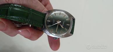 Vendo elegante orologio, dal quadrante cangiante di un bel verde smeraldo. Orologio tenuto benissimo, pari al nuovo. Cinturino molto particolare e nuovo.