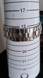 Cinturino – Bracciale originale in acciaio inossidabile logato (senza maglie aggiuntive). Lunghezza massima: 19 cm (21,5 cm con estensione per muta). Il cinturino NATO blu non è incluso nella vendita.