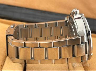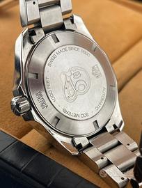 Funziona perfettamente con qualche piccolo segno di usura. Specifiche: Resistenza all’acqua: 300m Diametro cassa: 43mm Referenza: WAY201A Inserto ghiera in ceramica