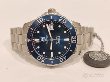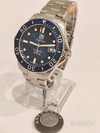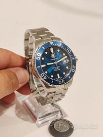Proponiamo splendido Aquaracer Calibre 5 Automatic, ref. WAY201B.BA0927, con quadrante blu soleil, lunetta girevole unidirezionale in alluminio ANODIZZATO blu e cassa in acciaio da 43 mm. Impermeabile fino a 300 metri, con datario a ore 3 e vetro zaffiro con trattamento antiriflesso.