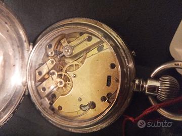 vendo orologio tasca londra bello in ordine anno 1881 movimento ancora cassa argento 925 con marchi diam. 530mm messa in ora con unghia meccanismo perfetto si puo' indossare e potare in giro