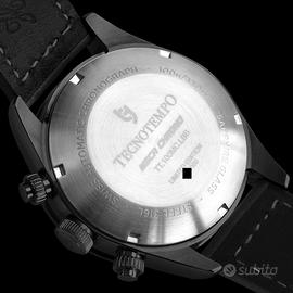 Tecnotempo - Automatic "MECA CHRONO" - Limited Edition - TT.100MC.LBB. Tecnotempo è il marchio italiano che combina qualità e design in ogni orologio, per chi apprezza uno stile senza tempo. Ogni modello, realizzato con componenti di alta qualità, rappresenta il perfetto incontro tra tradizione e innovazione, per chi vive il tempo con stile. PREZZO DI LISTINO 3300 EURO Tecnotempo "MECA CHRONO" - Swiss Auto Movt - Edizione Limitata 100 pezzi - Resistente all'acqua fino a 100 metri Nuovo con scatola e garanzia ufficiale di 2 anni, decorrenza 11 gennaio 2026. Movimento automatico svizzero Landeron 72 ****IMPORTANTE: Si noti che è normale che questo movimento cronografo automatico Landeron produca un suono forte se il peso oscillante del movimento automatico gira rapidamente.**** Il caso misura 41mm di diametro (esclusa la corona) e 16,40mm di spessore. Acciaio inossidabile 316L Cronografo automatico (fino a 30 minuti) Cristallo di zaffiro 3 corone con vite Cornice nera fissa Resistente all'acqua fino a 100 metri (10 ATM) Data (per evitare possibili danni al meccanismo dell'orologio, non cambiare manualmente il giorno/la data con la corona se l'ora dell'orologio è tra le 20:00 e le 3:00, questa è una regola valida per tutti gli orologi con data). Meraviglioso quadrante nero Cassa in acciaio inossidabile 316L con trattamento PVD nero Cinturino in vera pelle nera prodotto in Italia Edizione limitata di 100 pezzi. Diametro della cassa: 41mm (esclusa la corona completa) Spessore della cassa: 16,40 mm Larghezza della banda: 20mm Resistente all'acqua: 100 metri (10 ATM) con 3 corone a vite La circonferenza dell'orologio è di circa 22 cm. Peso: circa 100 g.