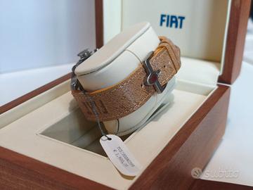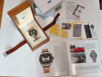 Vendo splendido Terra Cielo Mare Chrono FIAT 1100 S, orologio automatico dedicato alla storica FIAT 1100 S del 1947. Modello prodotto in serie limitata di 500 esemplari numerati con numerazione incisa. Orologio dal forte carattere automobilistico: l'inconfondibile calandra della 1100S caratterizza il quadrante dell'orologio, impreziosito dal lettering ripreso direttamente dal tachimetro. La cassa è corredata da una corona esclusiva che richiama il mozzo blocca ruota di scorta. I pulsanti cronografici hanno a loro volta la forma dei pistoni, mentre la zigrinatura antiscivolo riprende quella delle pedaliere. CARATTERISTICHE -Movimento automatico ETA 2824-2 -Cronografo a due contatori -Cassa in acciaio 316L satinato -Diametro 47 mm -Vetro minerale bombato -Impermeabilità 5 ATM (50 m) -Corona personalizzata FIAT -Quadrante nero con numeri bianchi e indici Superluminova -Cinturino originale in pelle cammello color naturale con logo FIAT -Fibbia in acciaio satinato con fregio FIAT CONDIZIONI Esemplare NOS (New Old Stock): mai indossato. Sono ancora presenti: -pellicola protettiva sul vetro -pellicola sul fondello -cartellino originale con prezzo DOTAZIONE COMPLETA (FULL SET) Corredo originale completo del 2007: -Orologio Terra Cielo Mare Chrono FIAT 1100 S -Scatola originale in legno Terra Cielo Mare -Velina originale -Scatola esterna FIAT -Cartellino con prezzo -Documentazione originale -Garanzia internazionale REVISIONE È stata appena effettuata una revisione completa presso orologeria specializzata, per un valore di 250 €, così da garantire perfetto funzionamento. SOLO CONSEGNA A MANO A ROMA, IN ZONA PIAZZALE CLODIO