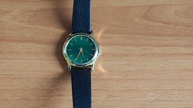 Vendo orologio Timemaster con movimento al quarzo giapponese e cinturino in penne. Diametro cassa 36mm e quadrante colore verde. Funziona perfettamente