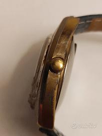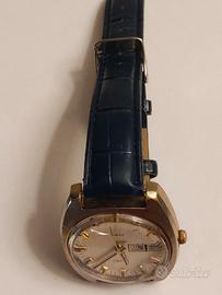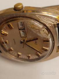 TIMEX orologio Electric Data Dey cassa d',orata quadrante bianco .Orologio usato funzionante Da Sostituire Vetro ,cinturino color blu .