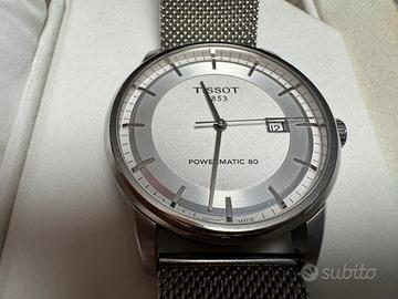 Vendo orologio Tissot Powermatic80. Marca: Tissot Modello: Luxury Referenza: T0864071603100 Movimento: Automatico Condizioni: Usato poche volte, ma tenuto con grande cura – in ottime condizioni estetiche e perfettamente funzionante Completo di: ✔️ Scatola originale Tissot ✔️ Cuscinetto ✨ Dettagli aggiuntivi: •Vetro zaffiro •Cassa in acciaio inox •Diametro cassa: 41 mm •Impermeabilità: 5bar (50m/165ft)