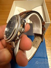 Vendo orologio Tissot Bridgeport, modello anni ‘90/2000, in condizioni quasi pari al nuovo. Le volte in cui è stato utilizzato si possono conare sulle dita delle mani. Full set, lo fornisco conpleto di scatola originale, mauali e garanzia originali. Tagliandino con ancora apposto il prezzo dell’epoca in lire (1.300£) e con ancora il suo cinturino e fibbia originali. Dimensione 38mm circa, monta lo storico e sempre affidabile calibro Valijoux 7750 che ha una precisione giornaliera impeccabile. Prezzo leggermente trattabile, per info non esitate a contattarmi. CONDIZIONI QUASI DA NOS!