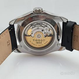Orologio da polso Tissot Couturier con indicatore di giorno e data, ref. T035407A, movimento automatico cal. ETA 2836-2, misura cassa esclusa corona: 39 mm, cassa in acciaio inossidabile, cinturino generico in pelle, vetro zaffiro. In ottime condizioni, funzionante, con scatola e libretti.