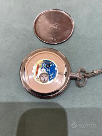 Elegante e Classico Orologio da taschino Uomo o da collana donna - Tissot Savonette. - Movimento: Quartz (alimentato a batteria) - Quadrante Colore bianco/avorio. Numeri romani stampati. Lancette stile Breguet. Datario a finestrella a ore 6. Scritte: TISSOT – QUARTZ – SWISS MADE - Cassa in Acciaio inox lucidato. Coperchio frontale apribile Corona Classica con pulsante per apertura del coperchio. - Catena in acciaio - Scatola originale Tissot Batteria nuova 02/2026. Stato estetico impeccabile