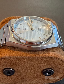 Vendo Tissot PRX 40 mm nel colore blu ghiaccio (automatico) ✅ Condizioni: Presenta segni di usura, che tuttavia appaiono più evidenti nelle foto che dal vivo. ✅ Incluso: Tissot PRX originale (Referenza: T137.407.11.041.00) Confezione originale (inclusi astuccio, certificato di garanzia e manuale di istruzioni) Caratteristiche principali dell'orologio: Movimento automatico svizzero (precisione e durata) Elegante cassa in acciaio inossidabile (40 mm, impermeabile fino a 10 bar) Quadrante blu ghiaccio con finitura a raggio di sole – un vero spettacolo! Vetro zaffiro (antigraffio e di alta qualità) Bracciale integrato in acciaio inossidabile con chiusura a farfalla (comodo e sicuro) Design minimalista – perfetto per il lavoro, il tempo libero o le occasioni speciali