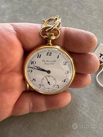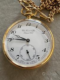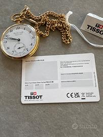 Tissot lepine meccanico manuale, nuovo, laminato oro, completo di catena originale, funzionante perfettamente, diametro 5 cm.quadrante bianco, numeri neri , secondi al 6, Swiss Made.