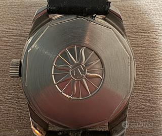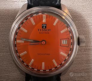 Orologio Tissot Teastar Date Sunburst Caseback Originale del 1972. Quadrante arancione, cassa in acciaio, vetro acrilico. Fondello con stella marina stilizzata, logo storico della linea Seastar