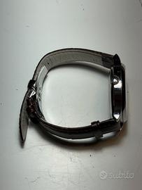 Il movimento è meccanico a carica automatica di manifattura svizzera con 25 rubini, visibile attraverso il fondello trasparente in vetro zaffiro. La cassa è sormontata da un vetro zaffiro bombato antigraffio e garantisce un'impermeabilità fino a 3 bar. L'orologio è corredato da un cinturino in pelle marrone con stampa alligatore e chiusura a farfalla originale Tissot in acciaio. Le condizioni estetiche sono ottime, con lievi segni di usura sulla cassa e sul fondello coerenti con un utilizzo normale.