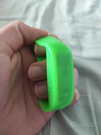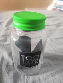 É diventato un po' appiccicoso dovuto al suo materiale e agli anni che ha, la batteria ormai é scarica. Orologio originale del brand Too Late, modello unisex in silicone, colore verde fluo brillante (taglia M, come da sticker sul fondo). Un accessorio che ha fatto storia, perfetto per nostalgici o collezionisti di gadget di quegli anni. L'orologio viene venduto completo del suo inconfondibile vasetto di vetro originale con tappo verde coordinato e logo nero.