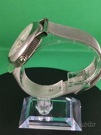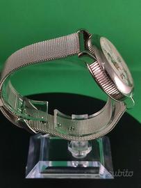 - Cinturino in maglia metallica argentata.