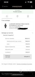 L’orologio è appena rientrato da assistenza ufficiale Panerai, con servizio completo documentato (fattura visibile in foto), per un totale di €1.019, che include:
