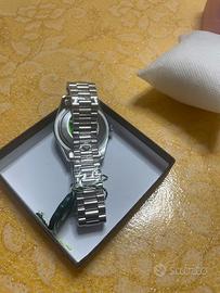 Elegante orologio con quadrante blu e cassa argentata. - Design classico e raffinato. - Bracciale in metallo. - Lunetta scanalata. NO CONSEGNA A MANO